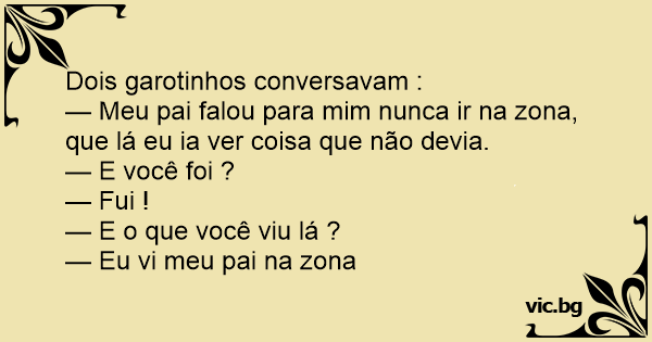 — Meu pai falou para mim nunca ir na zona, que lá eu ia ver coisa que não devia.
