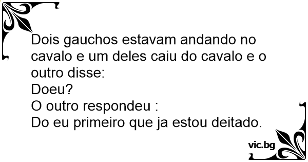 Dois gauchos estavam andando no cavalo e um deles caiu do cavalo e o outro disse: