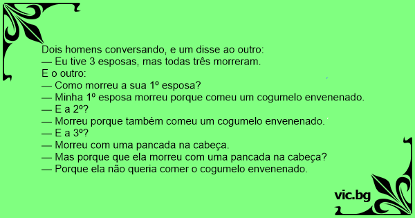 — Minha 1º esposa morreu porque comeu um cogumelo envenenado.