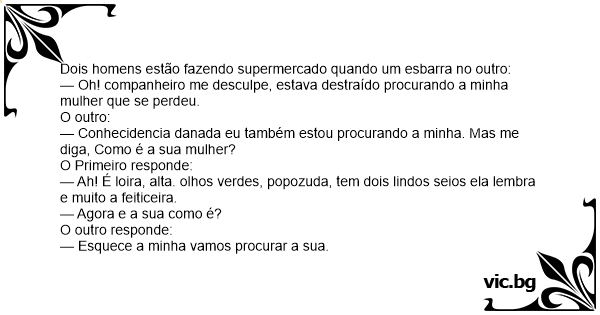 — Oh! companheiro me desculpe, estava destraído procurando a minha mulher que se perdeu.