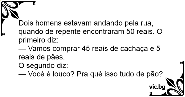 Dois homens estavam andando pela rua, quando de repente encontraram 50 reais. O primeiro diz:
