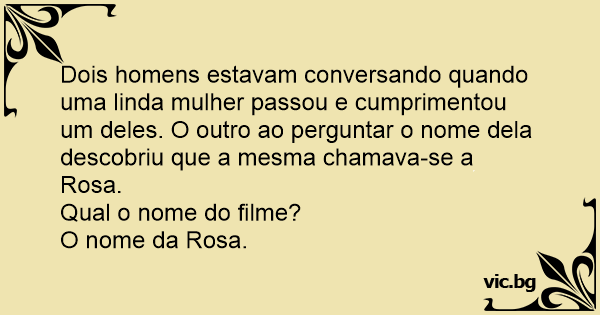 Dois homens estavam conversando quando uma linda mulher passou e cumprimentou um deles. O outro ao perguntar o nome dela descobriu que a mesma chamava-se a Rosa.
