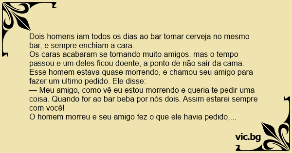 — Meu amigo, como vê eu estou morrendo e queria te pedir uma coisa. Quando for ao bar beba por nós dois. Assim estarei sempre com você!