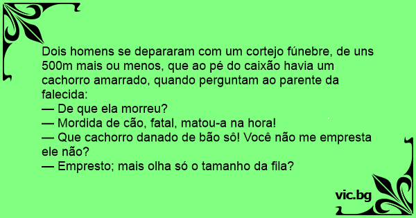 Dois homens se depararam com um cortejo fúnebre, de uns 500m mais ou menos, que ao pé do caixão havia um сасhоrrо amarrado, quando perguntam ao parente da falecida: