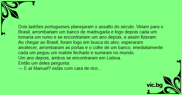 Dois ladrões portugueses planejaram o assalto do século. Viriam para o Brasil, arrombariam um banco de madrugada e logo depois cada um tomaria um rumo e se encontrariam um ano depois, e assim fizeram: