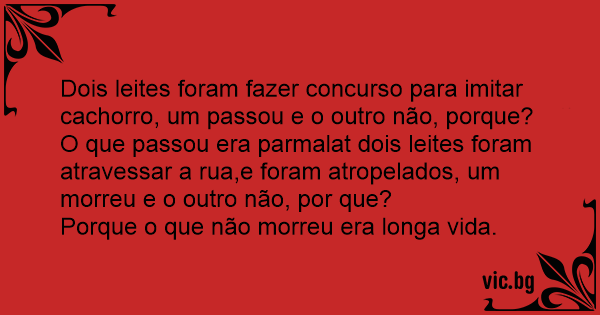 O que passou era parmalat dois leites foram atravessar a rua,e foram atropelados, um morreu e o outro não, por que?