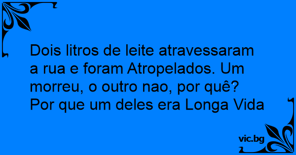 Dois litros de leite atravessaram a rua e foram Atropelados. Um morreu, o outro nao, por quê? Por que um deles era Longa Vida