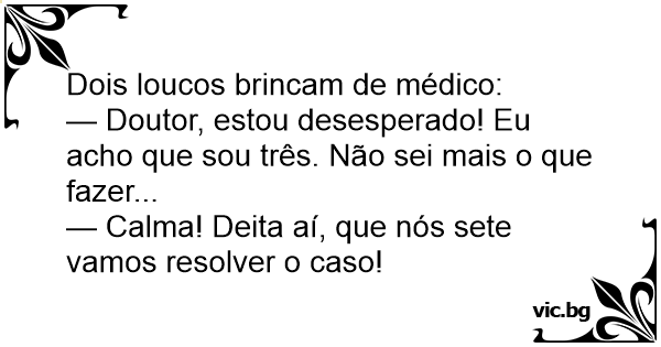 — Doutor, estou desesperado! Eu acho que sou três. Não sei mais o que fazer...