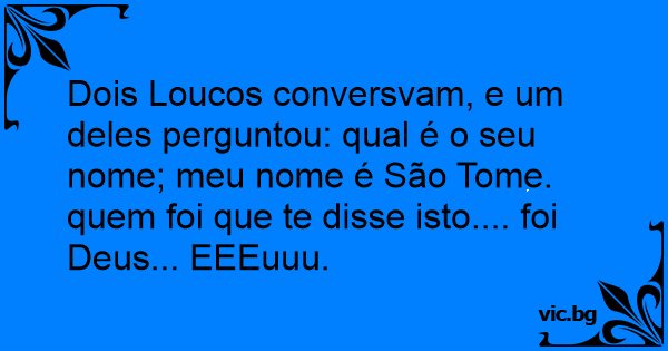 Dois Loucos conversvam, e um deles perguntou: qual é o seu nome; meu nome é São Tome. quem foi que te disse isto.... foi Deus... EEEuuu.