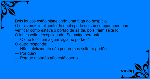 O mais mais inteligente da dupla pede ao seu companheiro para verificar como estava o portão de saída, pois iriam saltá-lo.