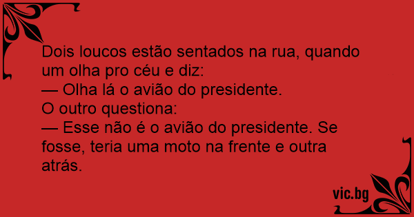 Dois loucos estão sentados na rua, quando um olha pro céu e diz: