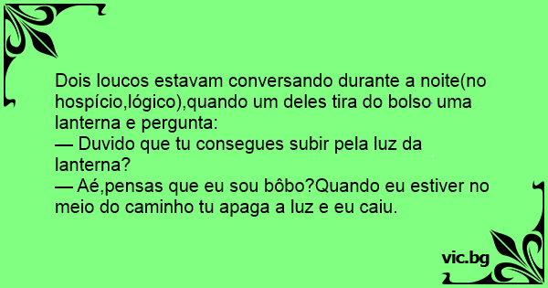 Dois loucos estavam conversando durante a noite(no hospício,lógico),quando um deles tira do bolso uma lanterna e pergunta: