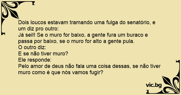 Dois loucos estavam tramando uma fulga do senatório, e um diz pro outro: