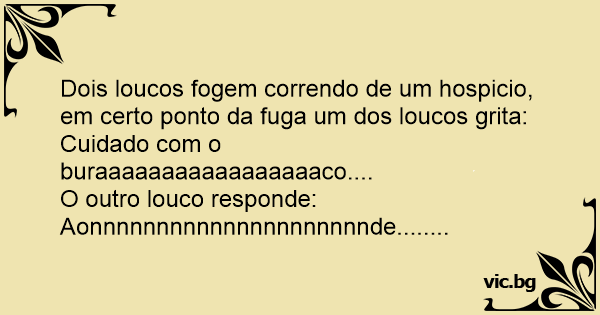 Dois loucos fogem correndo de um hospicio, em certo ponto da fuga um dos loucos grita: