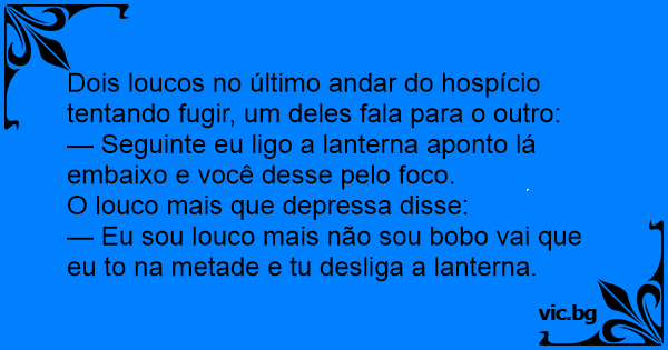 Dois loucos no último andar do hospício tentando fugir, um deles fala para o outro: