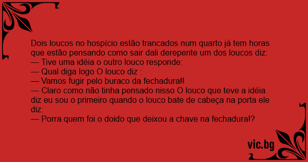 Dois loucos no hospício estão trancados num quarto já tem horas que estão pensando como sair dali derepente um dos loucos diz: