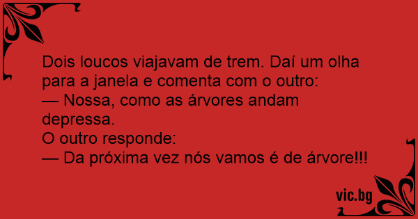 Dois loucos viajavam de trem. Daí um olha para a janela e comenta com o outro: