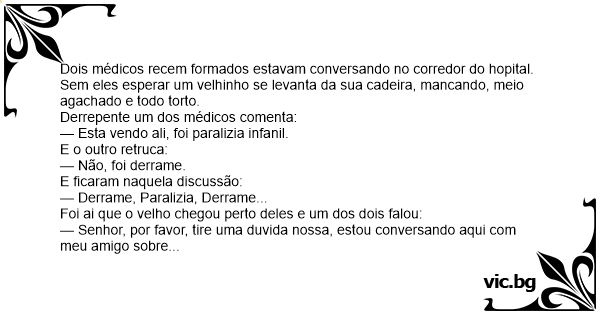 — Senhor, por favor, tire uma duvida nossa, estou conversando aqui com meu amigo sobre o senhor, eu estou falando para ele que o que aconteceu com o senhor foi derrame e ele está me dizendo que foi paralizia.