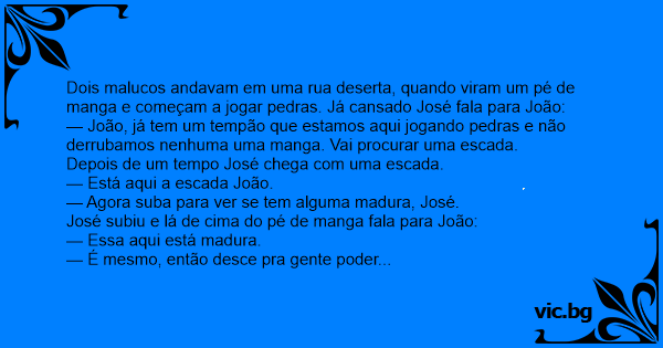 Dois malucos andavam em uma rua deserta, quando viram um pé de manga e começam a jogar pedras. Já cansado José fala para João: