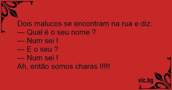 Dois malucos se encontram na rua e diz: