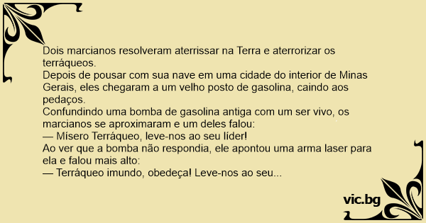 Confundindo uma bomba de gasolina antiga com um ser vivo, os marcianos se aproximaram e um deles falou:
