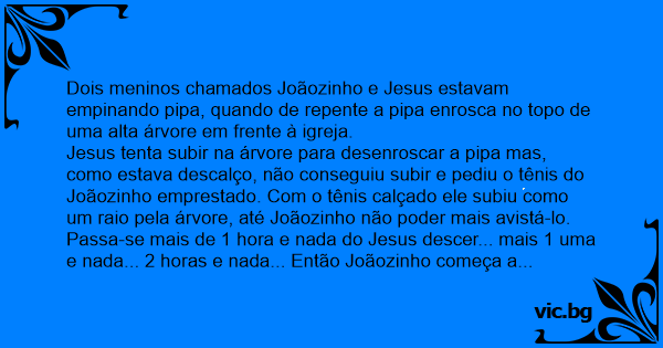 Dois meninos chamados Joãozinho e Jesus estavam empinando рiра, quando de repente a рiра enrosca no topo de uma alta árvore em frente à igreja.