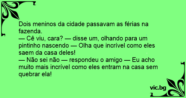 — Não sei não — respondeu o amigo — Eu acho muito mais incrível como eles entram na casa sem quebrar ela!