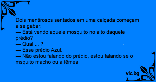 — Não estou falando do prédio, estou falando se o msquito macho ou a fêmea.