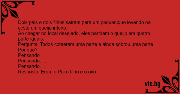 Dois pais e dois filhos saíram para um pequenique levando na cesta um queijo inteiro.