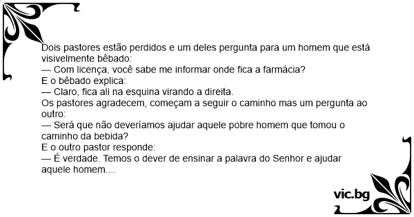 Dois pastores estão perdidos e um deles pergunta para um homem que está visivelmente bêbado: