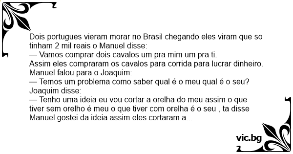 Dois portugues vieram morar no Brasil chegando eles viram que so tinham 2 mil reais o Manuel disse: