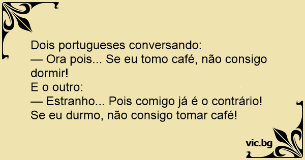 — Estranho... Pois comigo já é o contrário! Se eu durmo, não consigo tomar café!