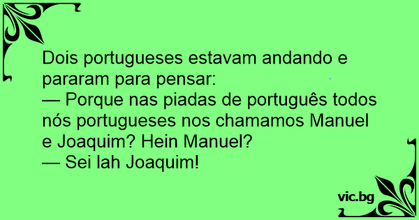 — Porque nas piadas de português todos nós portugueses nos chamamos Manuel e Joaquim? Hein Manuel?