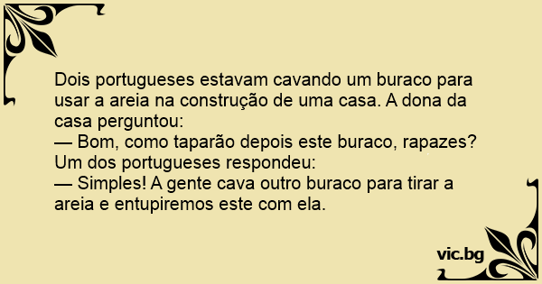 Dois portugueses estavam cavando um buraco para usar a areia na construção de uma casa. A dona da casa perguntou:
