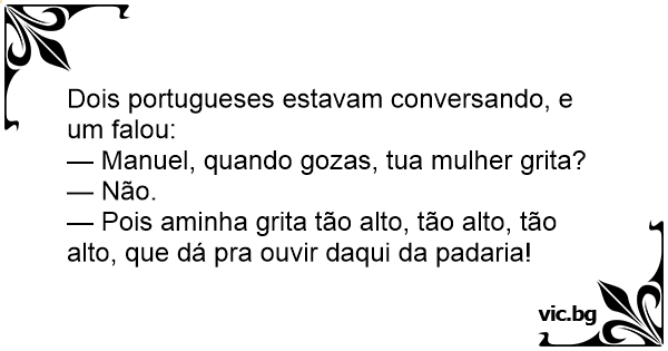 — Pois aminha grita tão alto, tão alto, tão alto, que dá pra ouvir daqui da padaria!