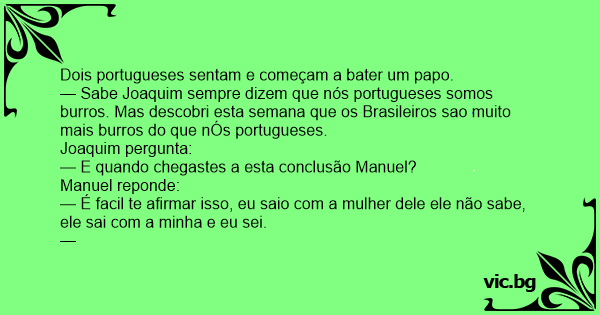 — Sabe Joaquim sempre dizem que nós portugueses somos burros. Mas descobri esta semana que os Brasileiros sao muito mais burros do que nÓs portugueses.