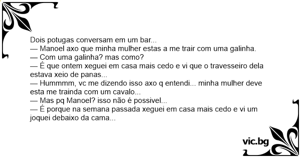 — Manoel axo que minha mulher estas a me trair com uma gаlinhа.