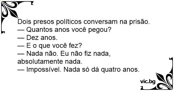 Dois presos políticos conversam na prisão.