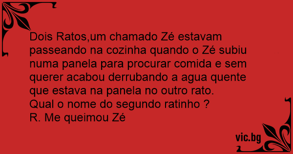 Dois Ratos,um chamado Zé estavam passeando na cozinha quando o Zé subiu numa panela para procurar comida e sem querer acabou derrubando a agua quente que estava na panela no outro rato.