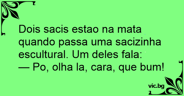 Dois sacis estao na mata quando passa uma sacizinha escultural. Um deles fala: