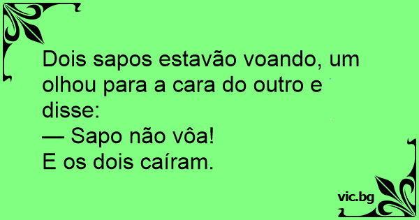 Dois sapos estavão voando, um olhou para a cara do outro e disse: