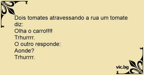 Dois tomates atravessando a rua um tomate diz:
