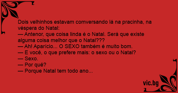 Dois velhinhos estavam comversando lá na pracinha, na véspera do Natal: