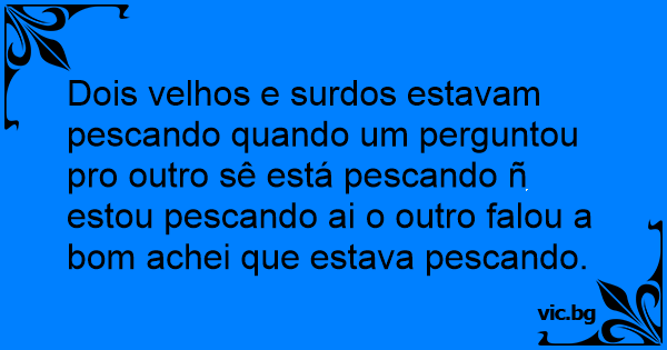 Dois velhos e surdos estavam pescando quando um perguntou pro outro sê está pescando ñ estou pescando ai o outro falou a bom achei que estava pescando.