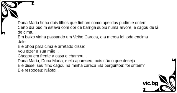 Dona Maria tinha dois filhos que tinham como apelidos pudim e ontem...