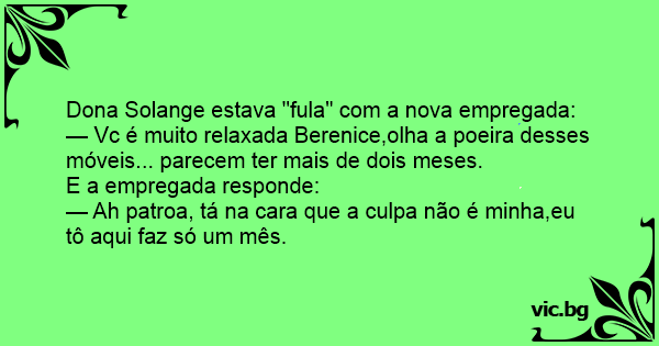 — Vc é muito relaxada Berenice,olha a poeira desses móveis... parecem ter mais de dois meses.