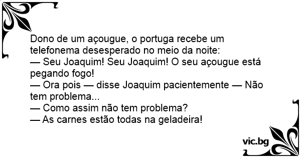 — Seu Joaquim! Seu Joaquim! O seu açougue está pegando fogo!