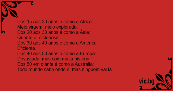 Dos 50 em diante é como a Austrália: