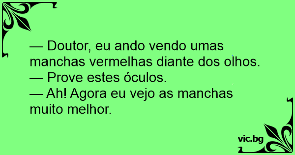 — Doutor, eu ando vendo umas manchas vermelhas diante dos olhos.