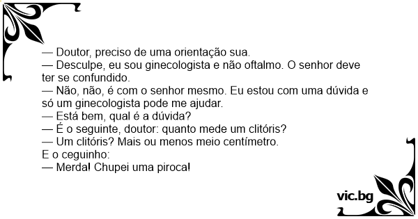 — Não, não, é com o senhor mesmo. Eu estou com uma dúvida e só um ginecologista pode me ajudar.